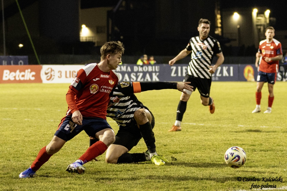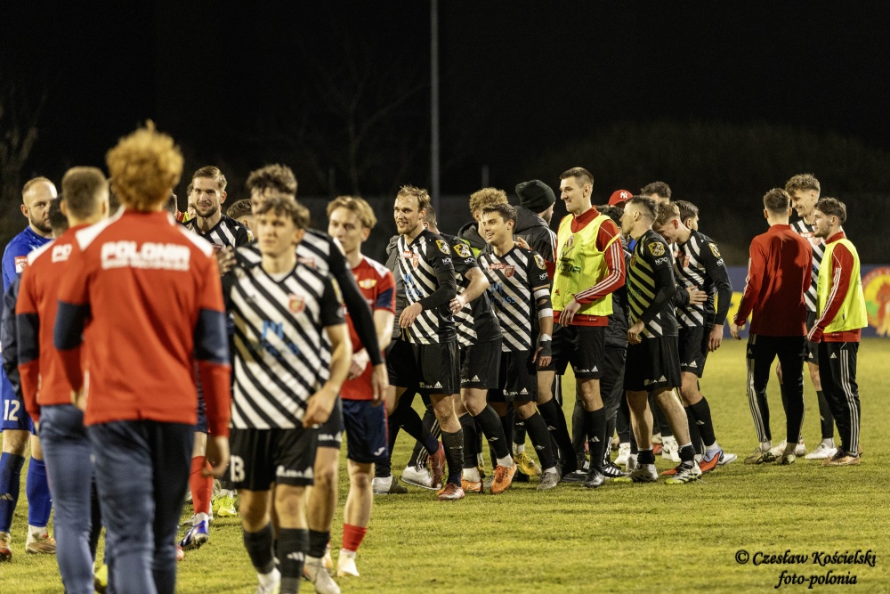 Po zmianie stron na boisku dominował już tylko Wikęd. To przyjezdni częściej byli przy piłce i stwarzali sobie groźne sytuacje bramkowe. Z przebiegu gry dało się wyczuć że gol dla gości wisi w powietrzu. I tak się faktycznie stało. W 64 minucie po dośrodkowaniu na długi słupek celnym strzałem całą akcję zakończył Piotr Kurbiel. Jak by tego było mało dwie minuty później po dośrodkowaniu z rzutu rożnego najwyżej w polu karnym wyskoczył Filip Sosnowski i celnym strzałem głową wyprowadził swój zespół na prowadzenie. Od tego momentu Wikęd cofnął się na własną połowę skupiając się na wybijaniu piłki przed siebie i grze na czas. Poloniści nie byli w stanie sforsować tego muru i choć już w doliczonym czasie gry doskonałą okazję na wyrównanie miał Szymon Doba ostatecznie musieli zejść z boiska pokonani. Porażka kosztowała średzian utratę fotelu lidera na który wskoczył Zawisza Bydgoszcz.
