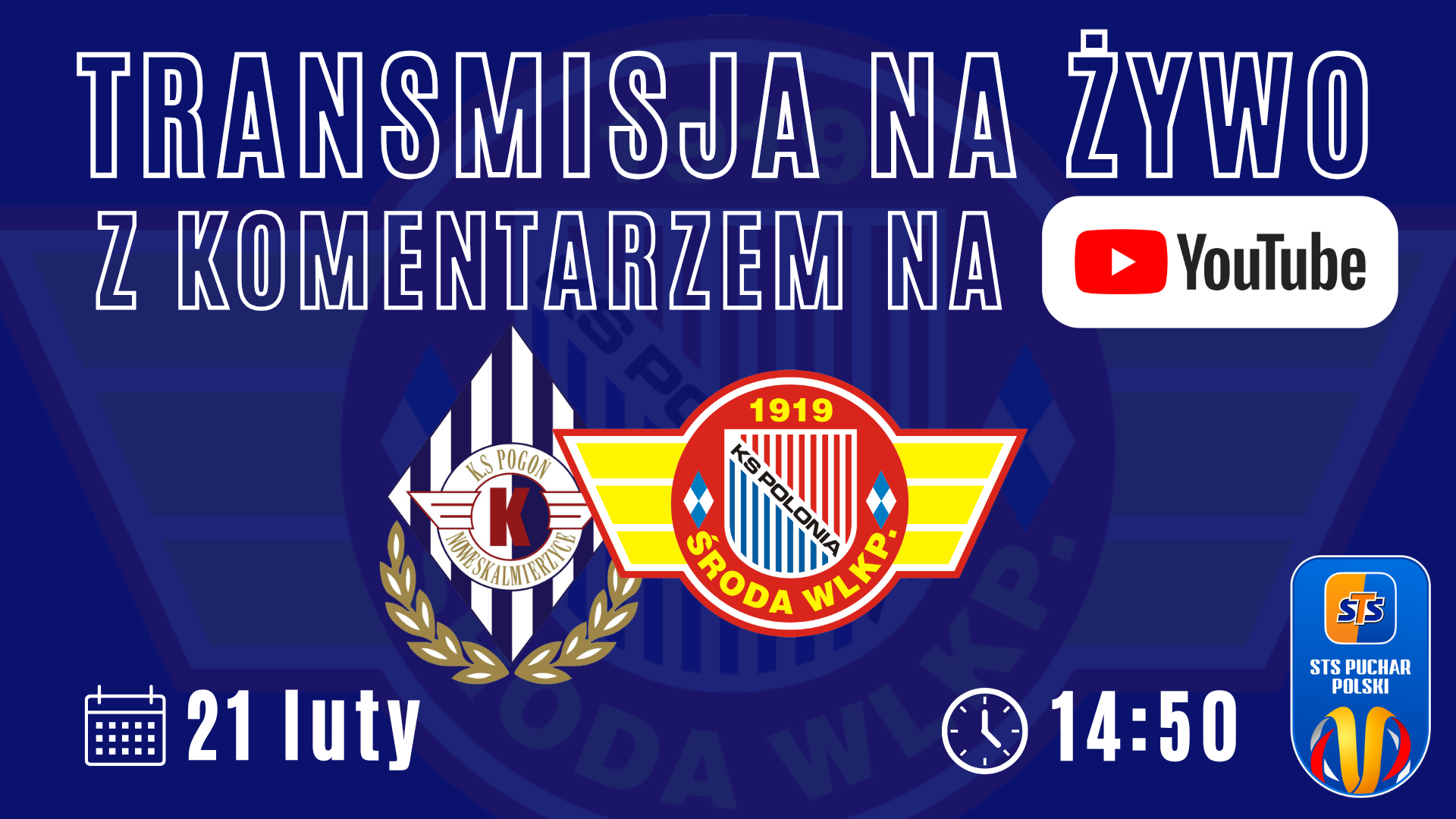 Zapraszamy Was na transmisję ze spotkania 1/16 finału Wielkopolskiego Pucharu Polski w którym piłkarze Polonii Środa zmierzą się na boisku ze sztuczną nawierzchnią w Pleszewie z rezerwami Pogoni Nowe Skalmierzyce.