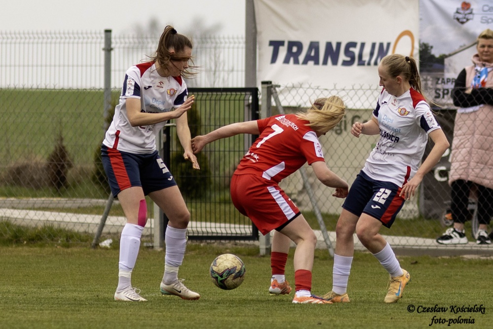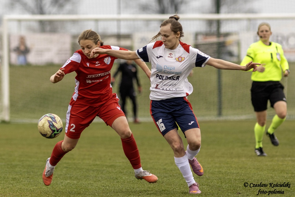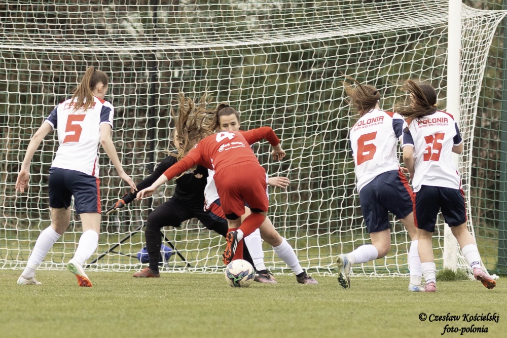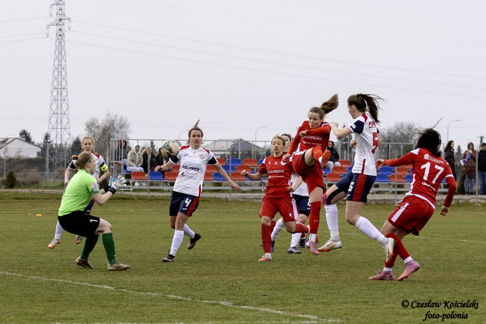 Po zmianie stron piłkarki ze Starych Oborzysk nie mając nic do stracenia ruszyły do odważnych ataków. Polonistki dały się zepchnąć do defensywy, wielokrotnie mając problemy z utrzymaniem dłużej piłki. Napór rywalek rósł, rósł i rósł aż w końcu udało się doprowadzić do wyrównania. W 77 minucie Małgorzata Knuła dopadła do piłki w którą nie trafiła Martyna Kujawa i skierowała do bramki obok próbującej interweniować Emilii Krajewskiej. W końcówce spotkania oba zespoły postawiły wszystko na jedną kartę ale żadnemu nie udało się przechylić szali zwycięstwa na swoją korzyść. Ostatecznie mecz kończy się remisem i podziałem punktów.