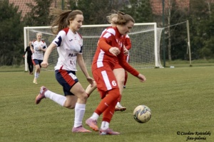Od samego początku piłkarki Polonii Środa ruszyły do zmasowanych ataków na bramkę rywalek. Te jednak mądrze się broniły i starały się wyprowadzać szybkie kontrataki. Polonistki długo nie mogły się przebić przez skomasowaną obronę rywalek. Najlepszą sytuację na danie prowadzenia swojemu zespołowi miała Agata Ratajczak ale z bliska fatalnie przestrzeliła. W 27 minucie polonistki jednak już się nie pomyliły. Julia Dobroń świetnym prostopadłym podaniem obsłużyła wychodzącą na czystą pozycję Darię Nowak a ta z zimną krwią umieściła piłkę w bramce rywalek. Jeszcze przed przerwą polonistki starały się podwyższyć swoje prowadzenie ale drugi raz defensywa Juna Trans nie dała się zaskoczyć.