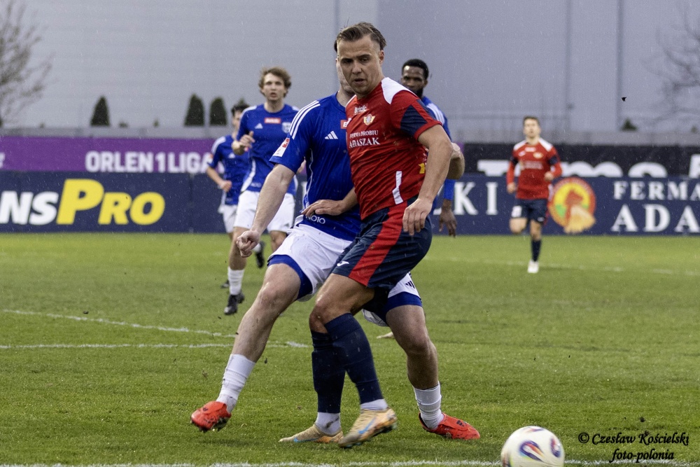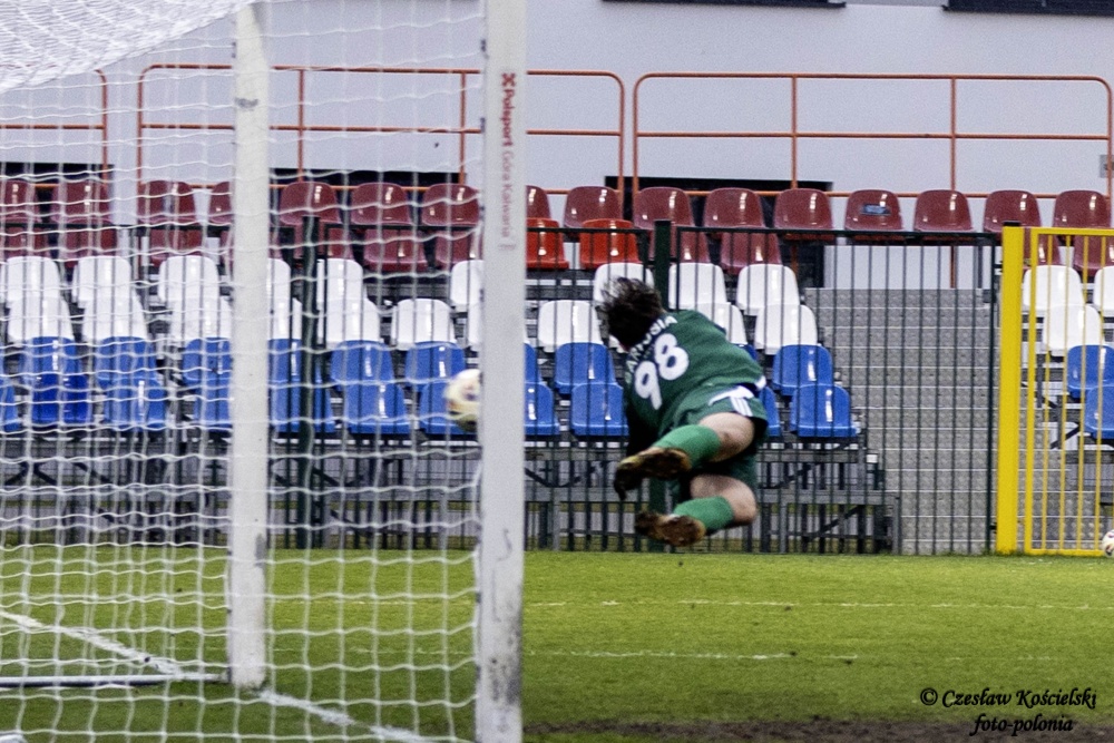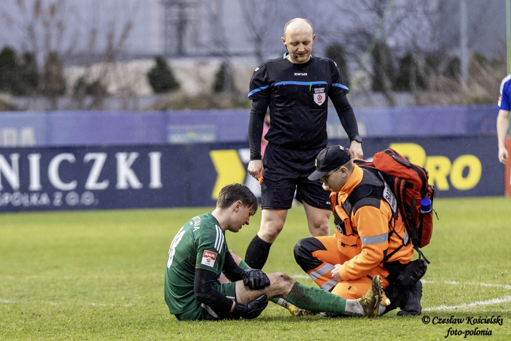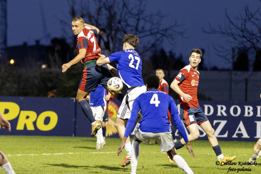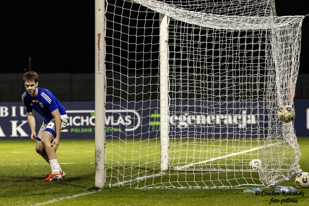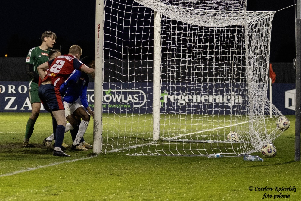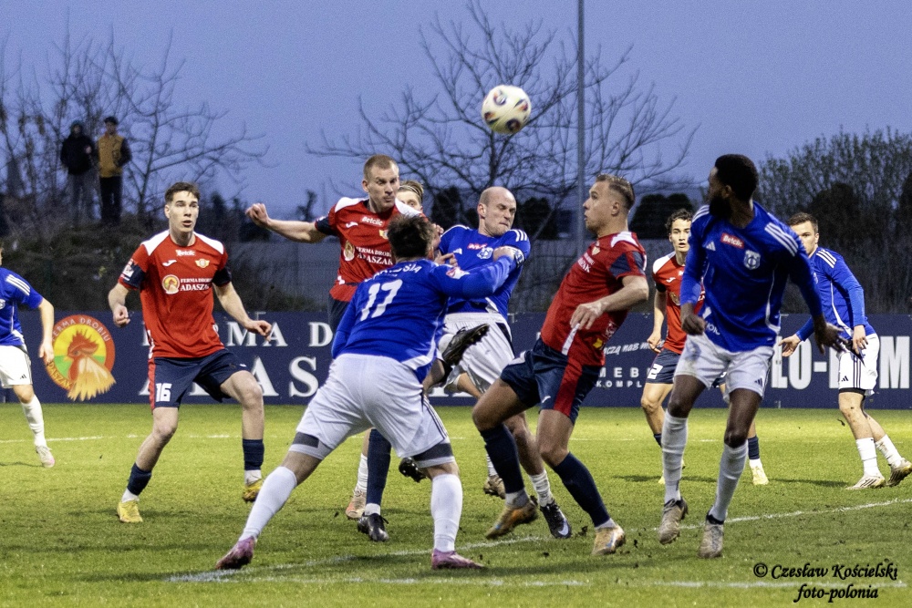 Sobotni pojedynek rozpoczął się od ataków Polonii Środa. Ale uderzenia Marcela Misztala, Jonatana De Amo czy Damiana Kołtańskiego padały łupem bramkarza Cartusii Pawła Depki. Z biegiem czasu spotkanie zaczęło się jednak wyrównywać a coraz częściej do głosu dochodzili rywale. Na szczęście w bramce Polonia Środa mogła liczyć na dobrze dysponowanego Przemysława Frąckowiaka. Tym samym ostatecznie pierwsza część spotkania kończy się bezbramkowym remisem.