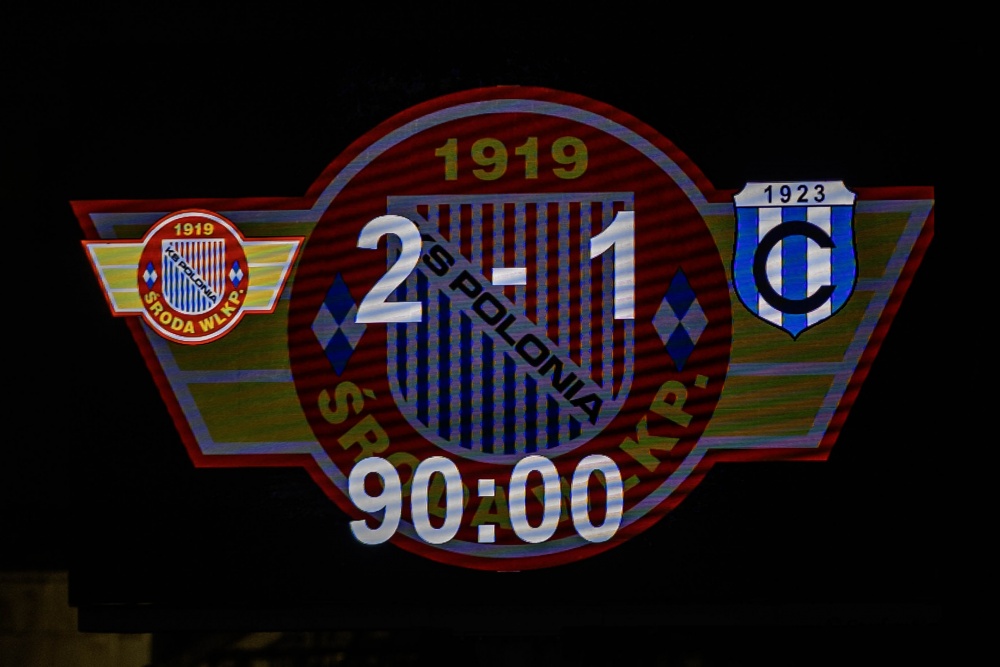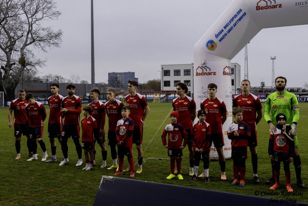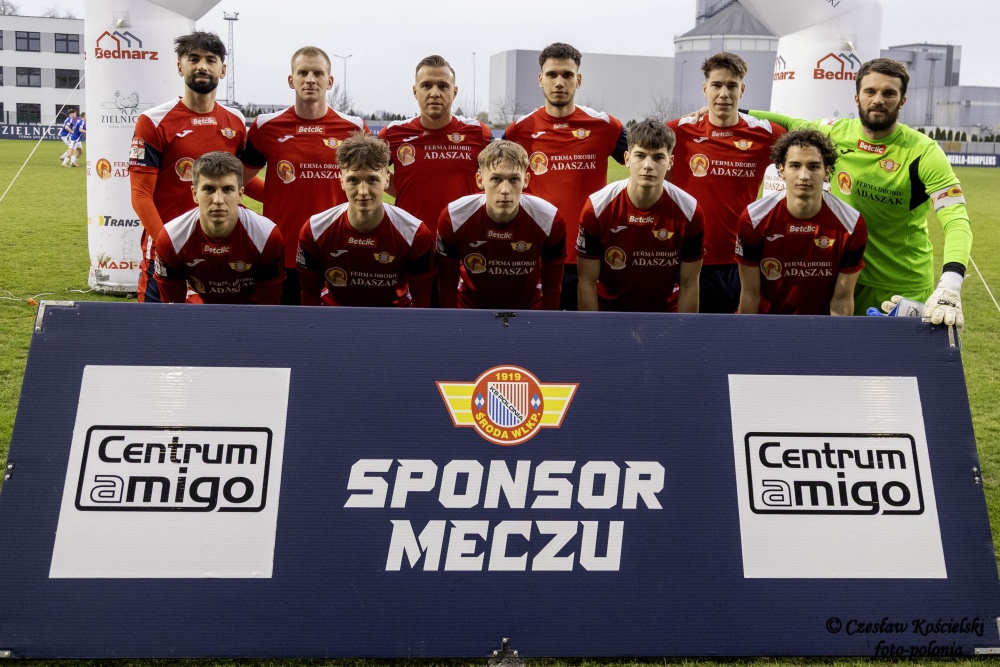 Polonia Środa wystąpiła w składzie: Frąckowiak – Budych, Skrobosiński, De Amo, Walczak (74` Słowiński), Szczypek (89` Ciapa), Misztal (67` Stangel), Iwiński (67` Sarbinowski), Kołtański, Mikita, Doba (46`Bartkowiak).