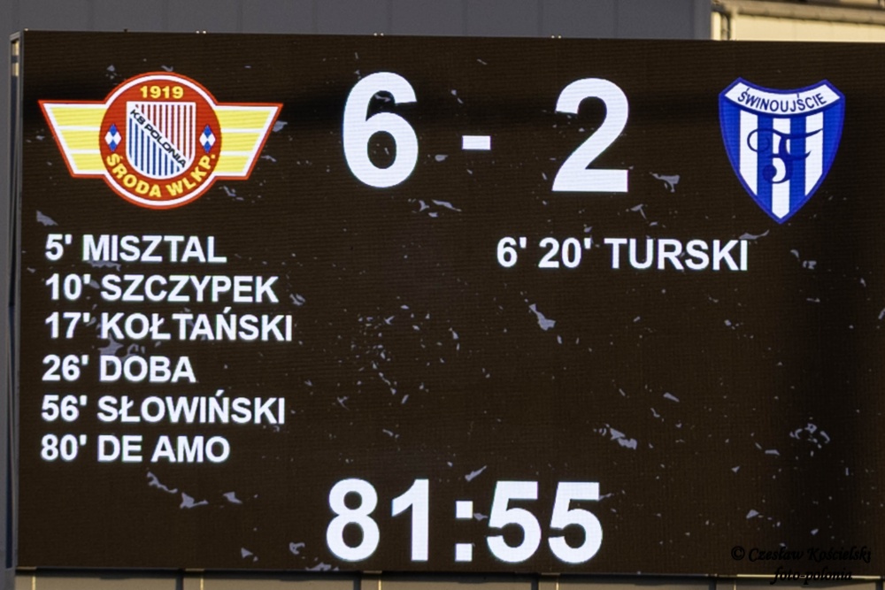 Po zmianie stron obraz gry nie uległ zmianie. Polonia Środa nadal była stroną przeważającą i groźnie atakowała. W 56 minucie po dośrodkowaniu z rzutu rożnego piłkę w polu karnym przedłużył Patryk Mikita a całą akcję celnym strzałem zamknął Wojciech Słowiński. Na kolejne trafienie polonistów przyszło nam poczekać do 79 minuty. Wtedy to piłkę w pole karne zagrał Gracjan Hyl, całość głową zgrał Jakub Wilczyński a piłkę z bliska do bramki rywali wpakował Jonatan de Amo. Tuż przed końcem spotkania jeszcze jedną okazję na podwyższenie wyniku miał Szymon Doba ale tym razem górą był bramkarz Floty. Ostatecznie Polonia Środa pokonuje Flotę 6:2 (4:2) i inkasuje kolejny komplet punktów.